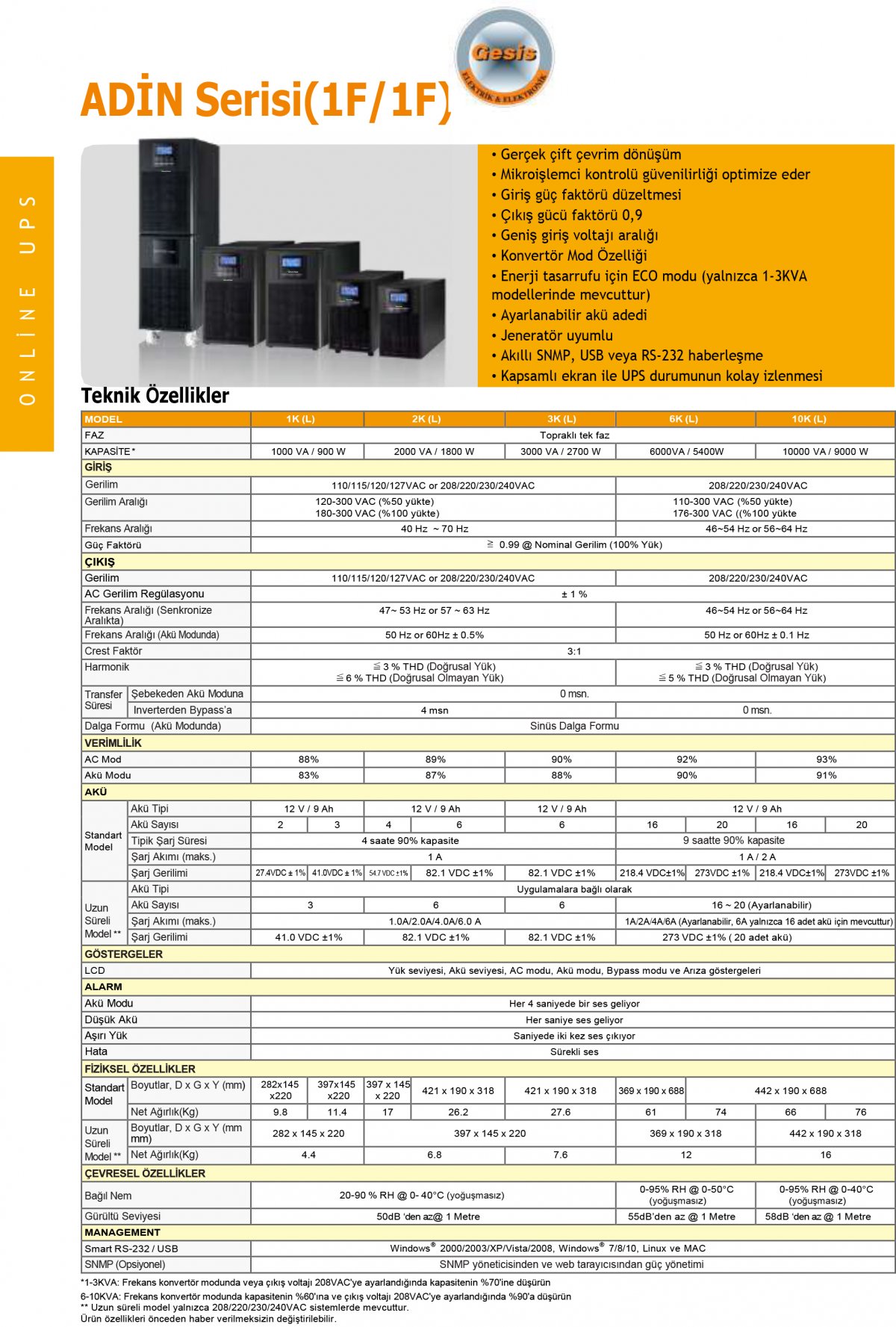 - Enerji tasarrufu için ECO modu (yalnızca 1-3KVA modellerinde mevcuttur)
